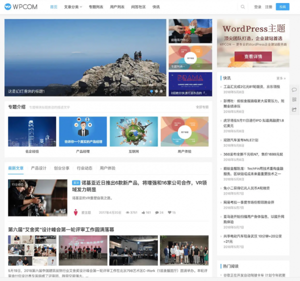JustNews是一款专为博客、自媒体、资讯类的网站设计开发的WordPress主题。JustNews主题支持自主研发的前端用户中心,不仅支持注册、登录、账户设置、个人中心等常用页面的添加,还可以上传头像、设置用户分组等,JustNews主题专为博客、自媒体、资讯类的网站设计开发,自适应兼容手机、平板设备,支持前端用户中心,可以前端发布/投稿文章,同时主题支持专题功能,可以添加文章专题。