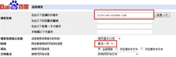 这样就能查询seo.aizhan.com最近一天收录的搜索结果。当然我们也可以查询最近一天的外链或者其他信息。