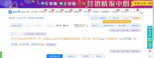 5118伪原创工具是采用新一代的分词算法对文章进行分词,并且结合5118词库,做到每日的新词根词识别进入分词词库,这是工具结合5118词库天然优势,也是工具的重要优点。利用5118词库计算得出的同义词替换词库,可以在不改变文章语义的前提下生成原创文章。同时每日导入目前主流的同义词库和输入法词库,确保文章的新词大可能能够找到替换词。缺点就是5118伪原创工具一键伪原创是收费的,免费的只能手动改词,也是会导致时间上的浪费。