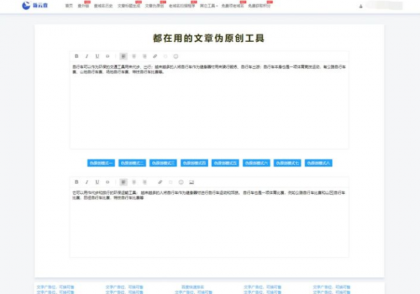 新云查伪原创工具是免费的在线编辑工具,结合八种ai智能一键伪原创模式,支持词库随机替换,句子,段落随机打乱。比较的节省时间、方便操作。大程度的保留了文章的原意,提高了伪原创后的可读性和原创度。新云查伪原创支持目前伪原创工具少有的图文伪原创模式。