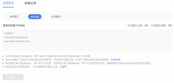 到这里很多朋友会问,怎么做才能有提交sitemap网站地图的权限呢?说实话,博主也不是很清楚,这取决于您的网站质量和百度的调整,我们能做的就是做好现在手上的事情,如更新高质量的文章,做好内链、优化好站内,其他的顺其自然即可。