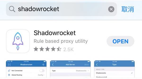 使用已购买小火箭的账号进入AppStore后,搜索Shadowrocket,下图所示,别下载软件啊!!!然后点击下载完成即可。