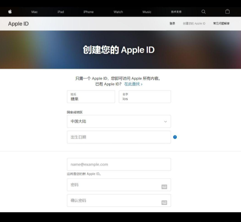5. 在登录页面,选择“创建新的Apple ID”(Create New Apple ID)。